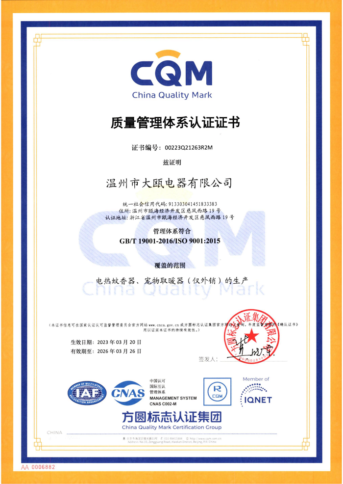 秉承“以人為本,以質(zhì)取勝”的經(jīng)營(yíng)理念,三十余載櫛風(fēng)沐雨,踐行“成就客戶、價(jià)值為本、誠(chéng)信務(wù)實(shí)、追求卓越”的核心價(jià)值觀。大甌公司堅(jiān)持以產(chǎn)研一體化的經(jīng)營(yíng)模式與差異化的競(jìng)爭(zhēng)戰(zhàn)略為基點(diǎn),持續(xù)推出細(xì)分市場(chǎng)上的多種類產(chǎn)品,豐富產(chǎn)品矩陣,滿足消費(fèi)者多樣化需求,助力新型驅(qū)蚊行業(yè)高速發(fā)展。